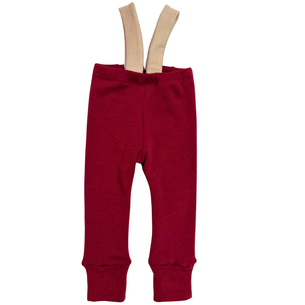 Zateplené tepláčky na kšandy/traky z příjemného, hřejivého materiálu. Vhodné na každodenní nošení v chladných měsících. Vysoké lemy nohavic můžete zahrnout na potřebnou velikost a tepláčky tak porostou chvilku s děťátkem.
