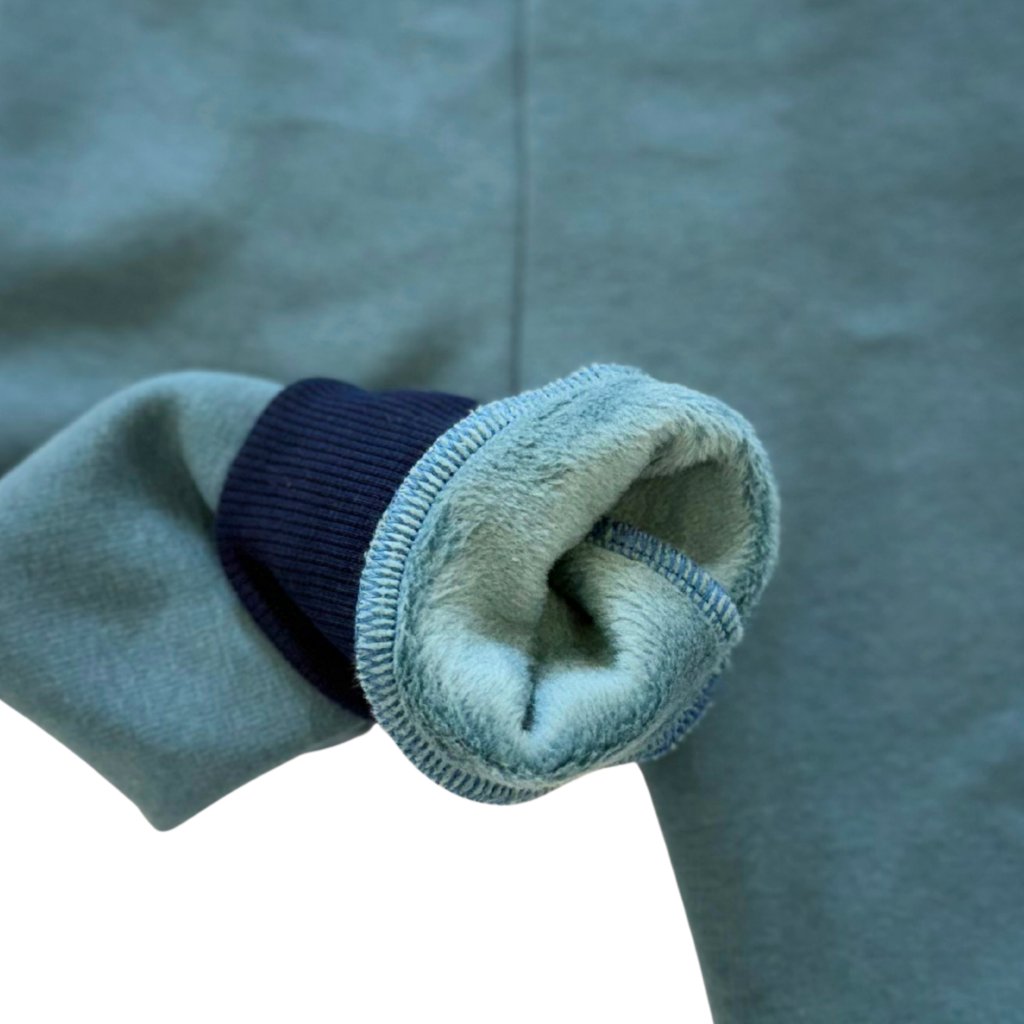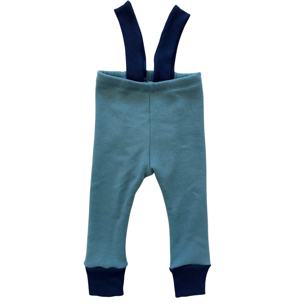 Zateplené tepláčky na kšandy/traky z příjemného, hřejivého materiálu. Vhodné na každodenní nošení v chladných měsících. Vysoké lemy nohavic můžete zahrnout na potřebnou velikost a tepláčky tak porostou chvilku s děťátkem.