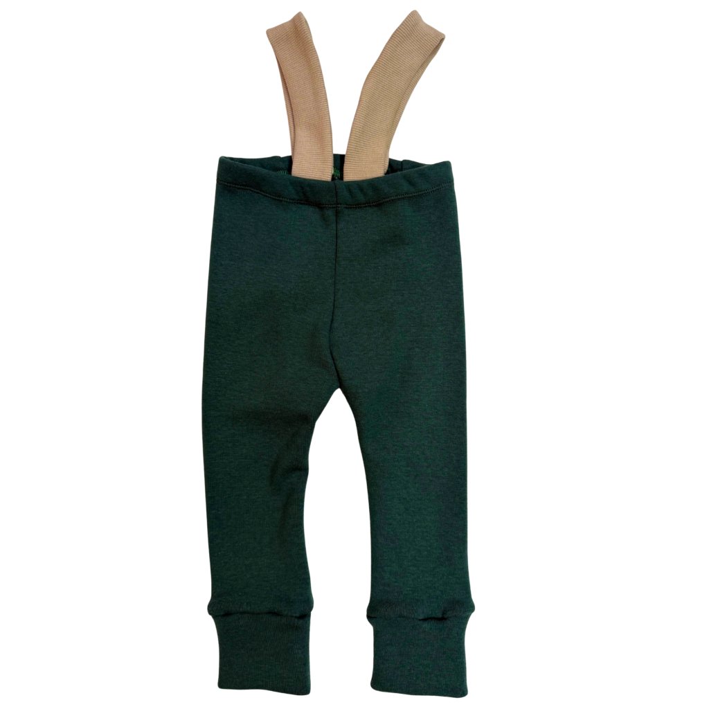 Zateplené tepláčky na kšandy/traky z příjemného, hřejivého materiálu. Vhodné na každodenní nošení v chladných měsících. Vysoké lemy nohavic můžete zahrnout na potřebnou velikost a tepláčky tak porostou chvilku s děťátkem.