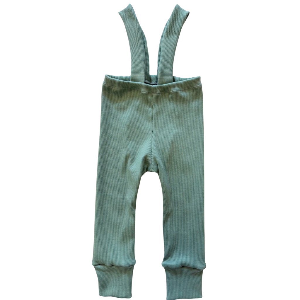 Dětské tepláky z žebrovaného bavlněného úpletu na kšandy/traky
