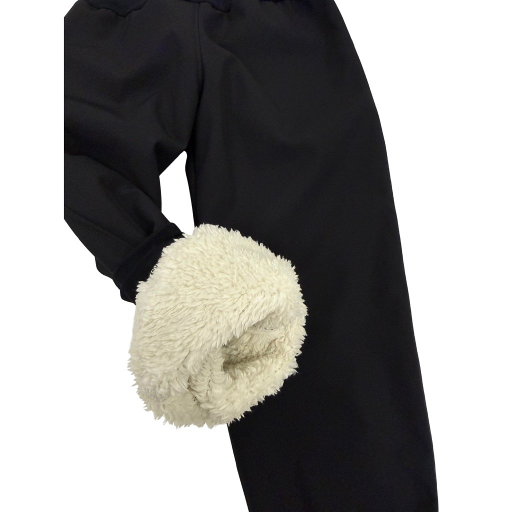 Dětské softshellové kalhoty s beránkem v černé barvě. Využijete při chladnějším podzimu a celou zimu. Jsou nepromokavé, takže si v nich Vaše děti užijí i bezva koulovačku.