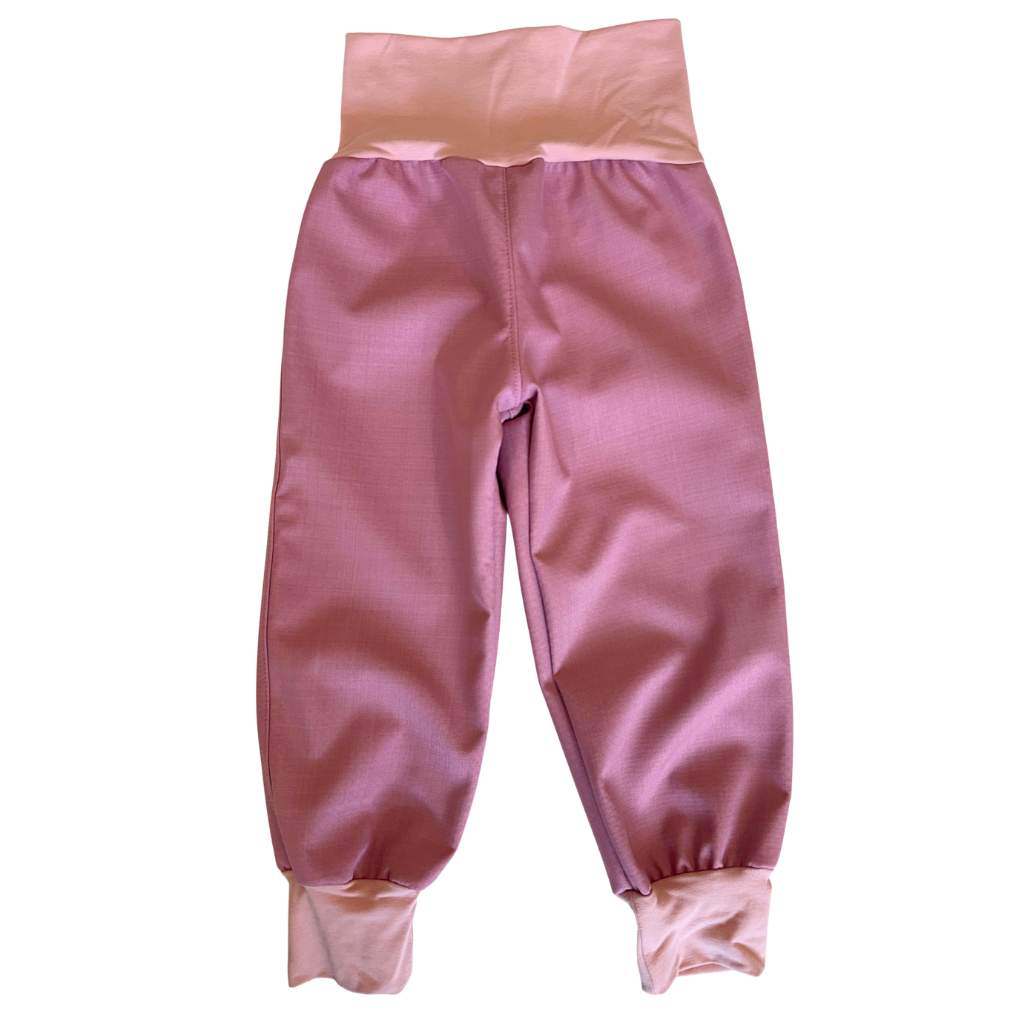Použitý softshell je funkční prodyšná a nepromokavá látka. Udrží dítko v suchu, zároveň se však nezapotí. Na údržbu je to parťák. Menší nečistoty stačí otřít vlhčákem, po koupeli v blátivé kaluži můžete kalhoty prohnat pračkou na jemný režim 30 °C bez aviváže! a jsou zase jako nové :-).