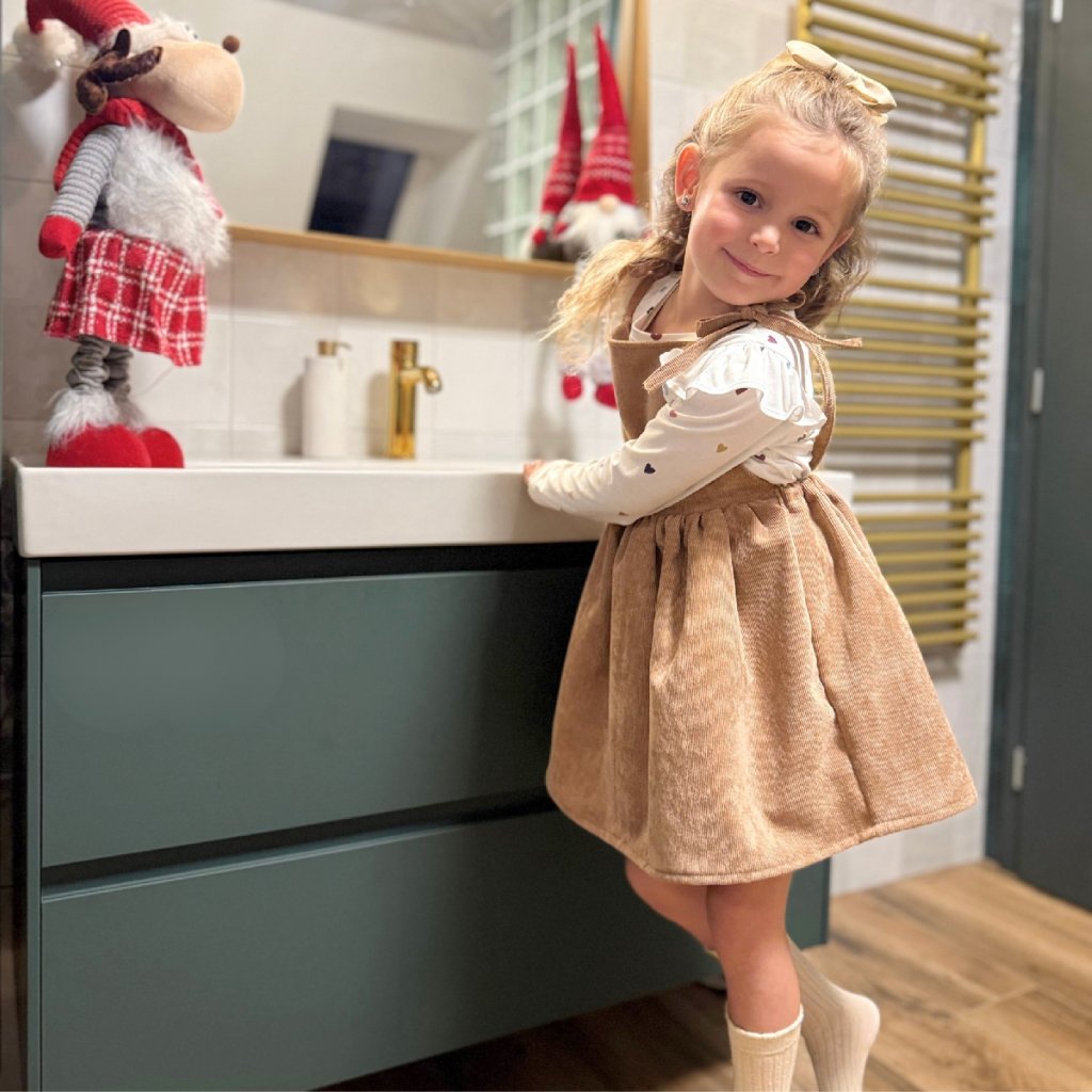 Sváteční manšestrové šaty BÉŽOVÉ