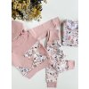 Vysoký pas a lem nohavic z úpletu můžete zahrnout na aktuální potřebnou velikost a tepláčky tak porostou chvilku s děťátkem.